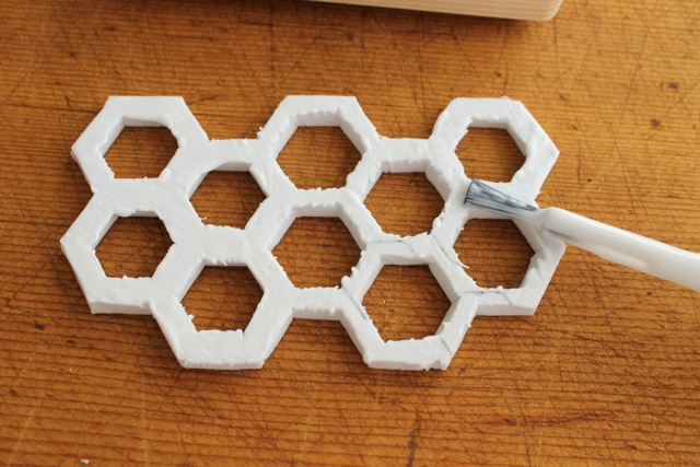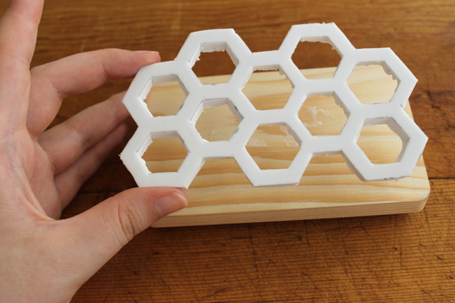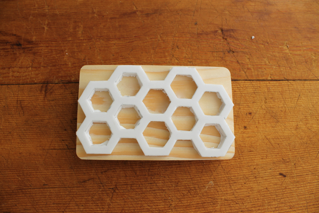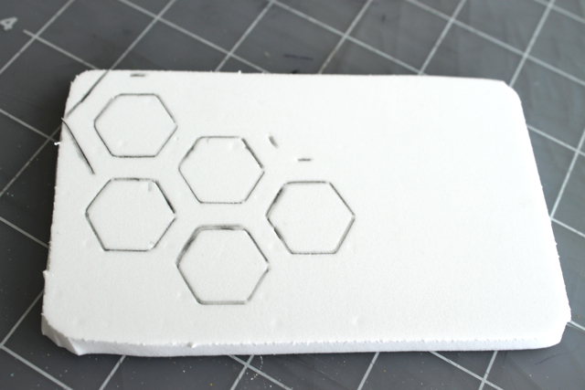 С помощью острого ножа вырежьте начерченные шестиугольники и контур будущего штампа.