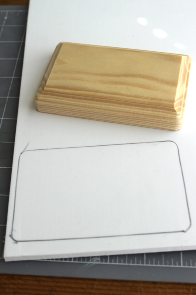 Сначала на пенопласте очертите по контуру деревянную заготовку и вырежьте острым ножом.
